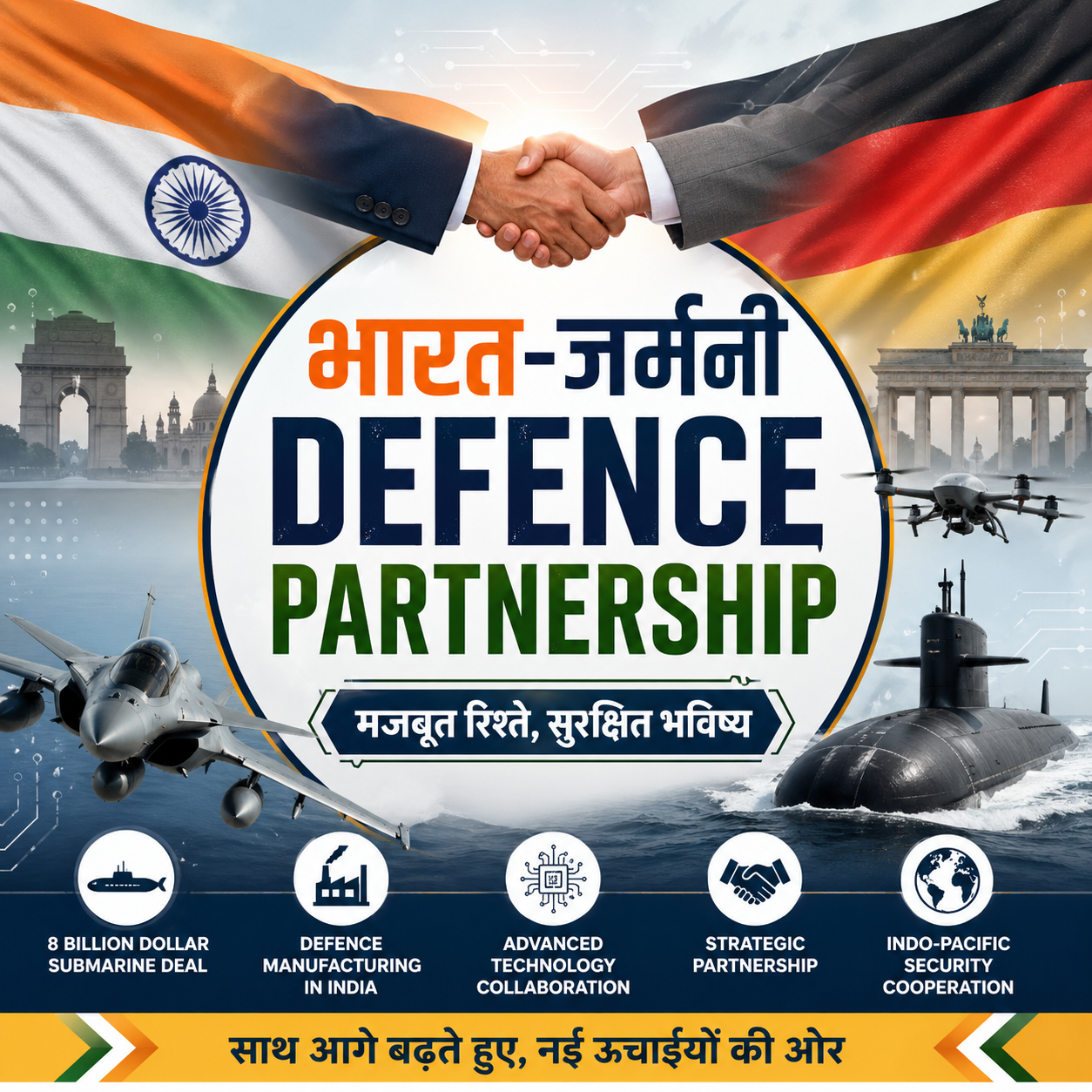 भारत और जर्मनी के बीच defence partnership अब एक नए phase में पहुंच चुकी है। Submarine deals, AI-enabled defence systems और Indo-Pacific cooperation दिखाते हैं कि दोनों देश long-term strategic partnership की तरफ बढ़ रहे हैं। आने वाले वर्षों में यह relation सिर्फ military cooperation तक सीमित नहीं रहेगा, बल्कि technology, manufacturing और global geopolitics में भी बड़ा असर डाल सकता है।